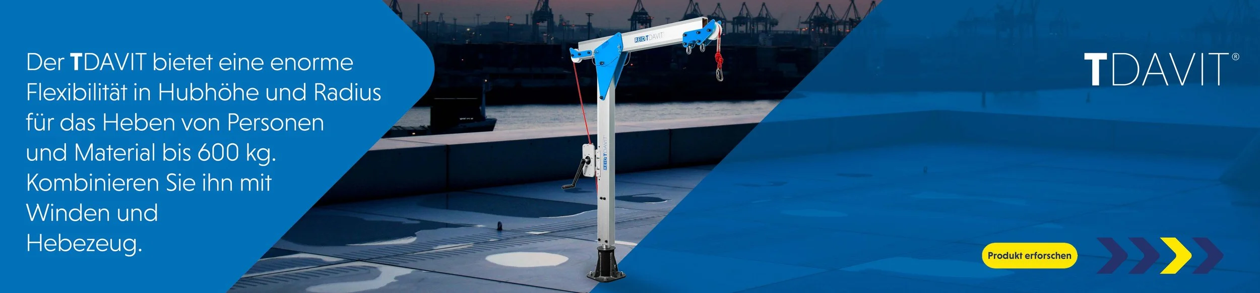 Der T DAVIT ist in verschiedenen Konfigurationen erhältlich und kann an spezifische Anforderungen angepasst werden (WLL-abhängig).